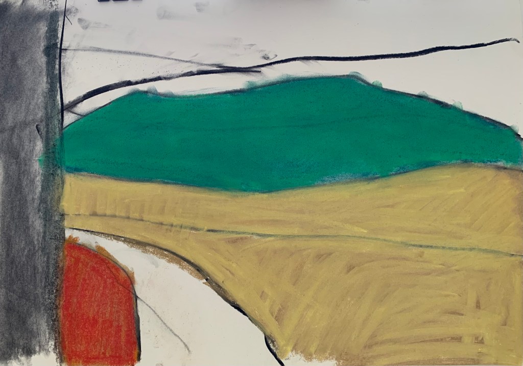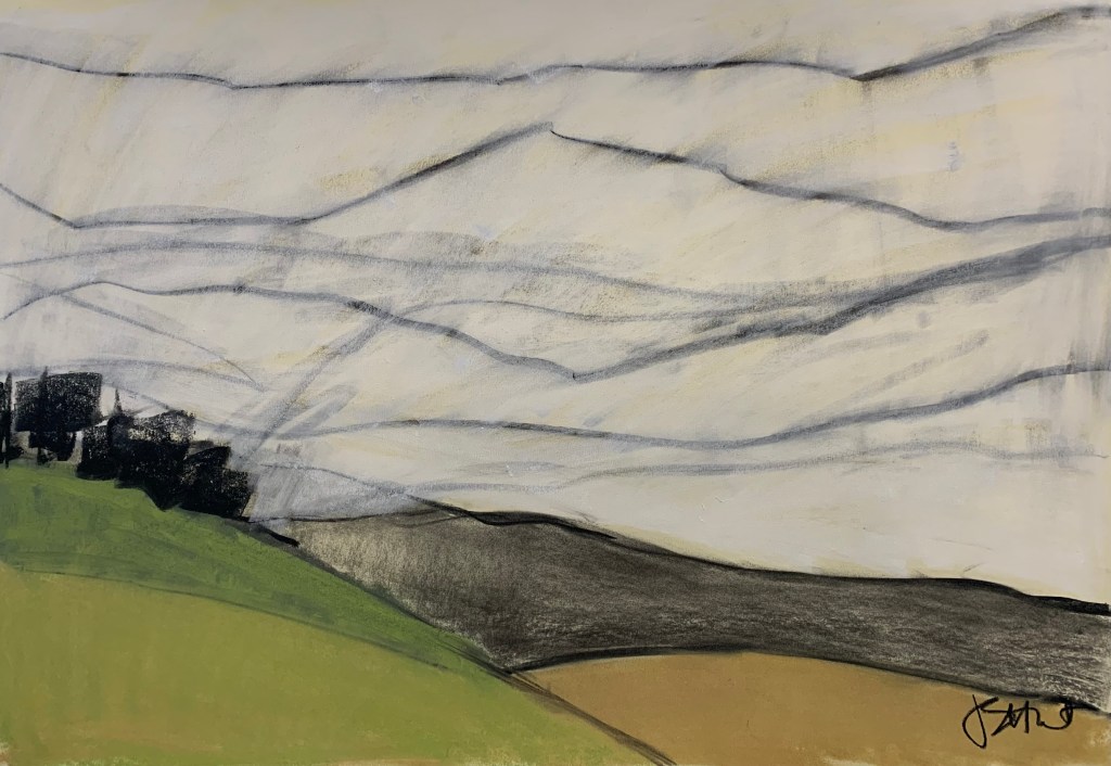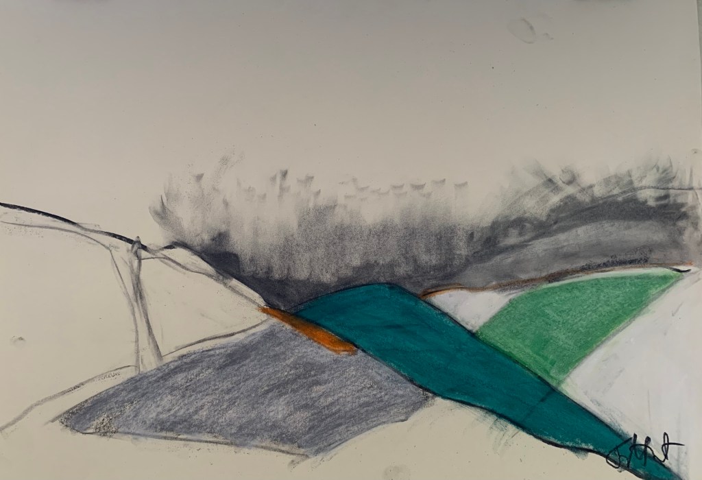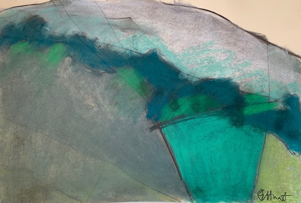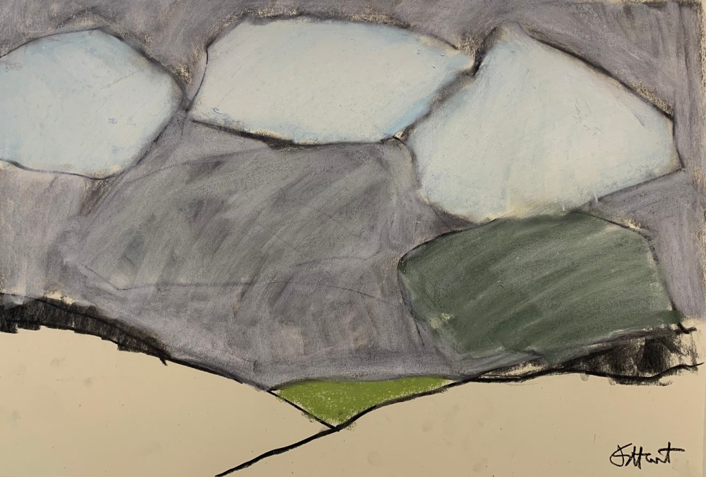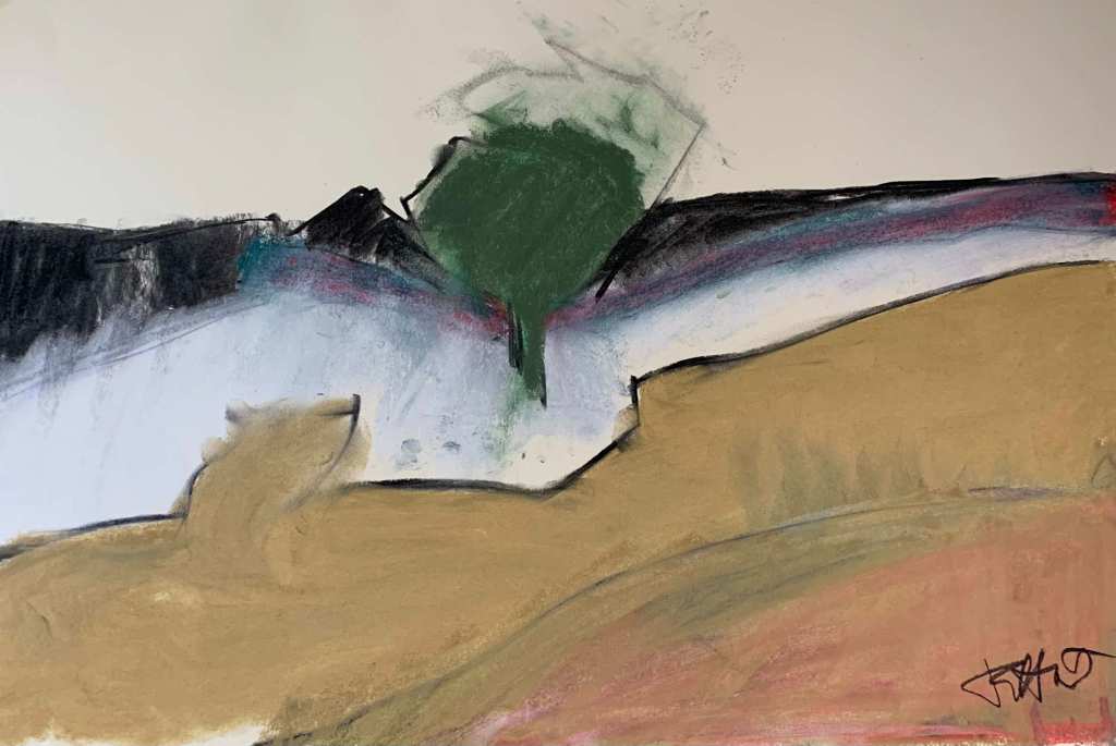to produce exciting semi-abstract paintings in pastel and charcoal.