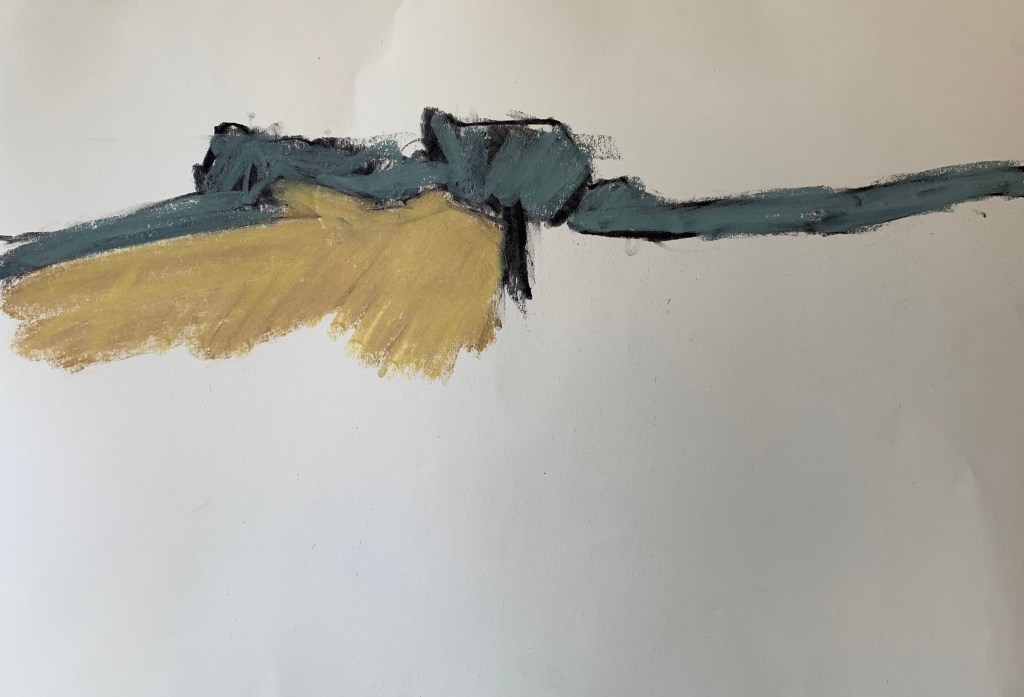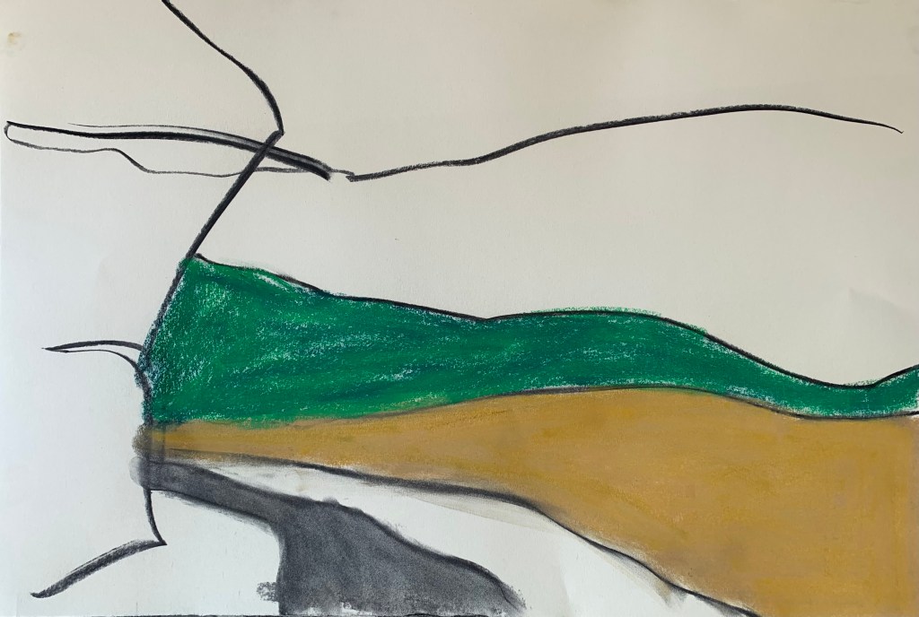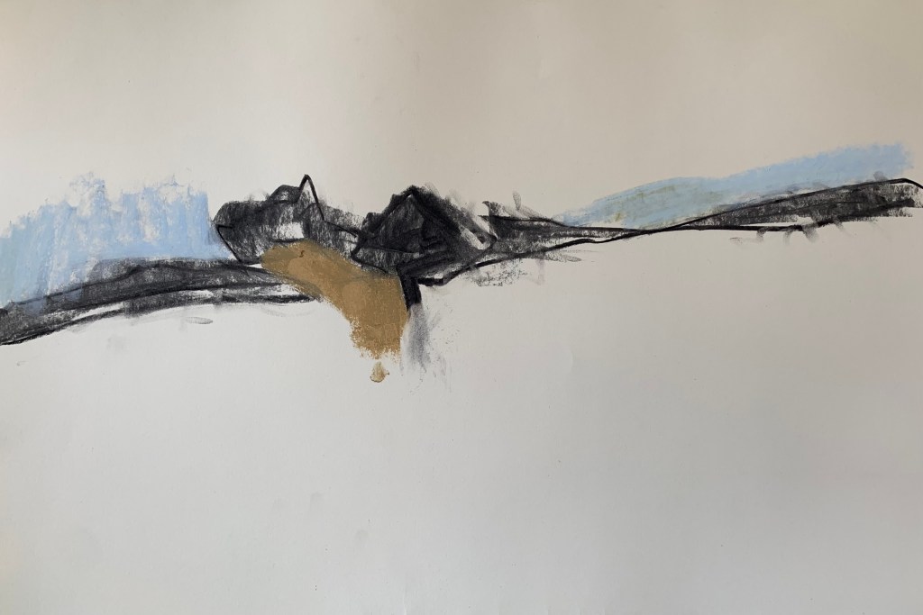 using charcoal line to allow the story to weave across the paper.